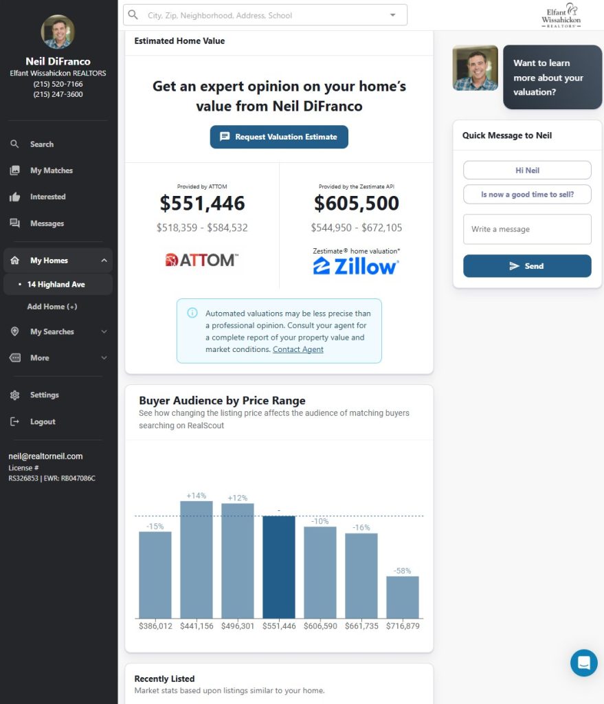 I met with a number of agents at the property prior to selecting Neil. First of all, he spent the most time of any of the agents. As we went room by room, he pointed out the positive aspects of the house but also pointed out those areas that needed to be addressed from a cosmetic and “home inspection” stand point. His strong technical background avoided some issues that I would have had to address in the midst of the process. His internet marketing skills coupled with his research and knowledge of each market was very impressive throughout the process. ( He even utilized his “drone” as part of the marketing effort). Neil exceede my expectations in his communications with me about things I needed to be aware of and when I had questions, I always got an immediate response regardless of the time of day. He is a true hard working professional and has strong communication skills. As I told Neil at the end of the process,” I am not sure whether I am smart or just lucky, but I sure picked the right agent in representing me in selling my home”. Give him a shot and you will be impressed.